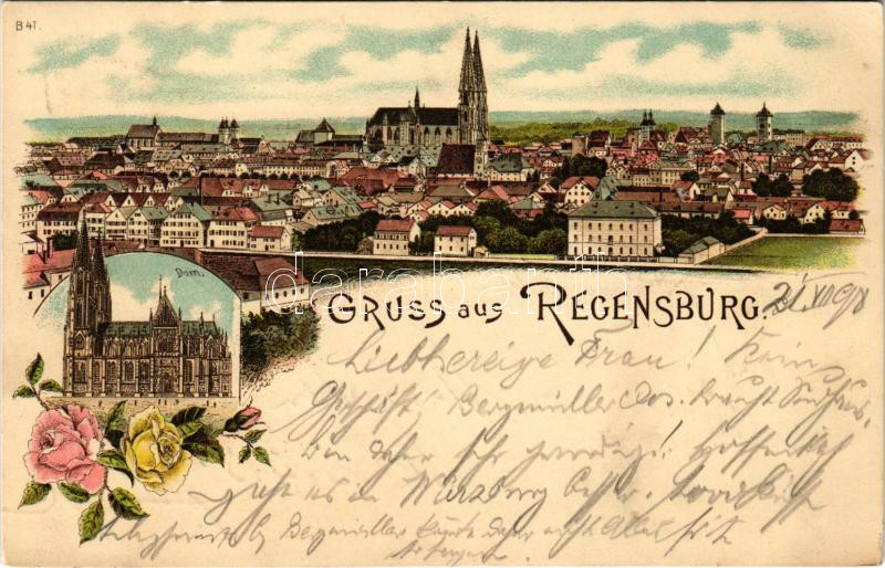 1898 Regensburg, dom. Art Nouveau, floral, litho
