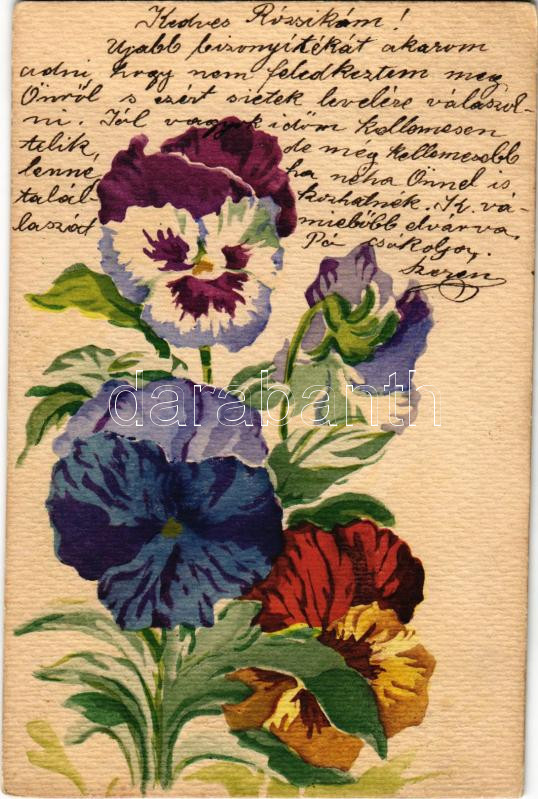 1903 Kézzel festett virágos üdvözlőlap / Hand-painted flower greeting