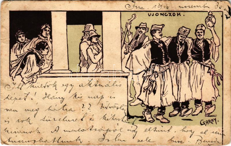 1910 Újoncok. Magyar folklór művészlap. Nemzetközi Világposta levelezőlap, nyomtatta és kiadja Kner Izidor / Hungarian folklore art postcard s: Garay (EB)