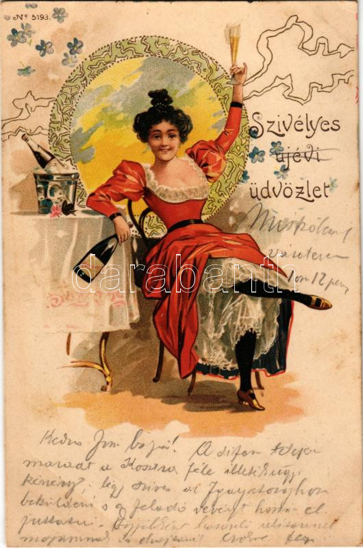 1899 Szívélyes újévi üdvözlet. No. 5193. / New Year greeting art postcard. litho