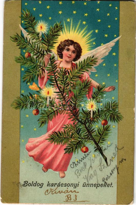 1905 Boldog karácsonyi ünnepeket / Christmas greeting art postcard with angel. Emb. litho (EK)