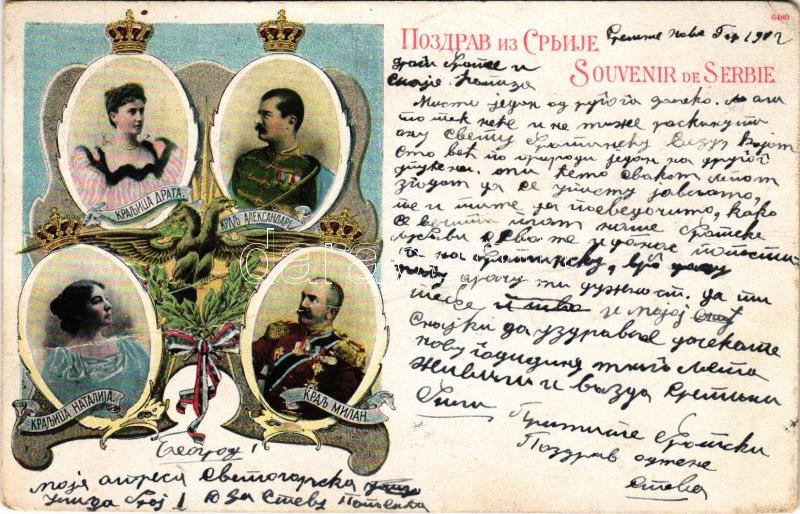 1902 Souvenir de Serbie / Sándor szerb király és Draga szerb királyné / Alexander I of Serbia and Draga Masin. Art Nouveau, floral (fa)