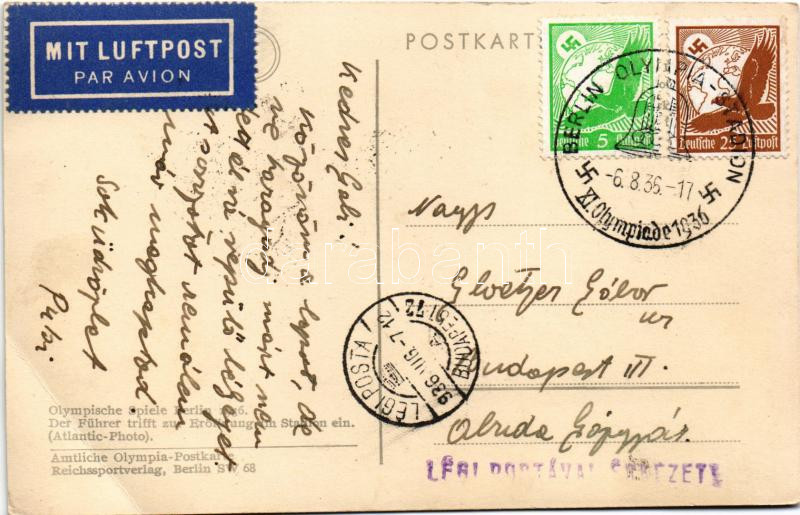 1936 Berlin, Olympische Spiele, Der Führer trifft zur Eröffnung im Stadion ein / Olympic Games, Adolf Hitler + So. Stpl (felületi sérülés / surface damage)