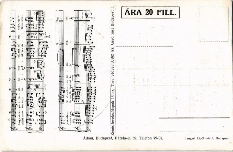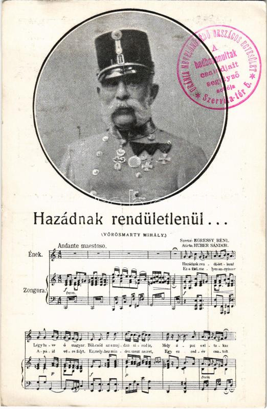 I. Ferenc József - Hazádnak rendületlenül... (Vörösmarty Mihály) Zenés levelezőlapok 13. sz. / Franz Joseph I of Austria + "Uránia nevelőnővédő országos egyesület a hadbavonultak családjait segélyző actiója" (EK)