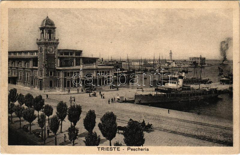 1925 Trieste, Trieszt; Pescheria / fish market, steamships (EK)