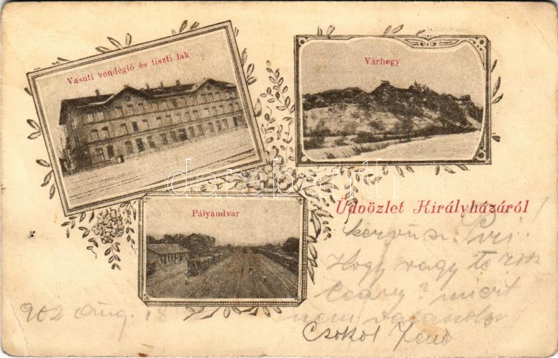1902 Királyháza, Korolevo, Královo nad Tisou; Vasúti vendéglő és tiszti lak, Várhegy, pályaudvar, vasútállomás / railway station, restaurant and officers house, castle hill. Art Nouveau, floral (fa)