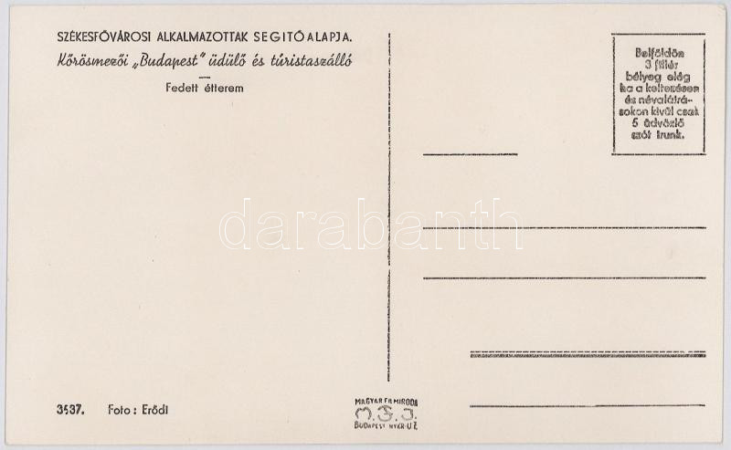 Kőrösmező, Körösmező, Jaszinya, Jasina, Yasinia (Máramaros); Székesfővárosi Alkalmazottak Segítőalapja, Budapest üdülő és turistaszálló, fedett étterem. Foto Erődi / resort and tourist hotel, covered restaurant