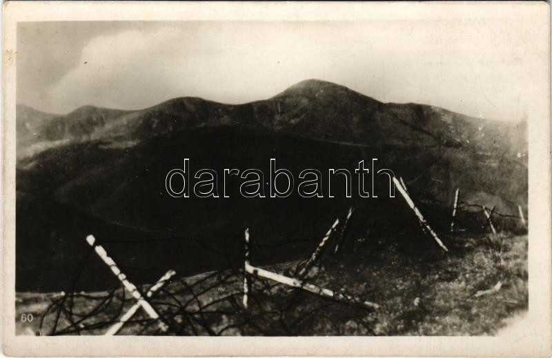 Kőrösmező, Yasinia, Yasinya, Jassinja, Jasina (Máramaros); Hoverla hegység a világháborúból visszamaradt drótakadályokkal. Rosenthál Margit kiadása / mountain with barbed wire barrier left from WWI (fl)