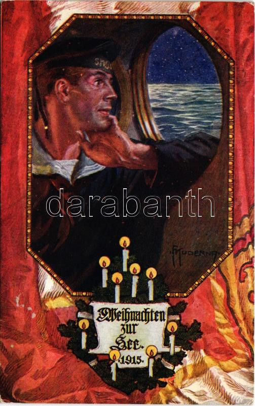 1915 Weihnachten zur See 1915. Offizielle Weihnachtskarte des Österreichischen Flottenvereines zu Gunsten des Roten Kreuz, des Kriegsfürsorgeamtes und des Kriegshilfsbüro. K.u.K. Kriegsmarine / WWI Austro-Hungarian Navy Christmas greeting art postcard with mariner s: F. Kuderna (EK)