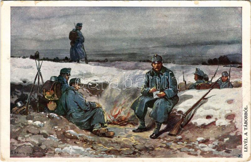 1915 Levél a táborból / WWI K.u.K. military art postcard, soldiers by the campfire s: S. Adam (EB)