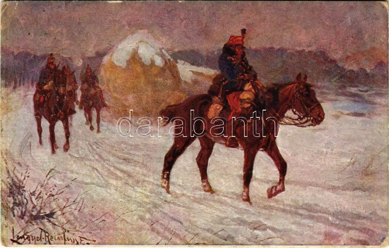 1916 Előőrsön. A M. kir. honvédelmi minisztérium hadsegélyező hivatala kiadása / WWI Austro-Hungarian K.u.K. military art postcard, outpost, support fund s: Lengyel Reinfuss (kopott sarkak / worn corners)