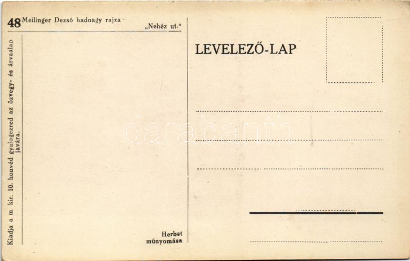 Nehéz út. Kiadja a m. kir. 10. honvéd gyalogezred az özvegy- és árvaalap javára. Herbst műnyomása - 48. / WWI Austro-Hungarian K.u.K. military art postcard s: Meilinger Dezső hadnagy (EK)