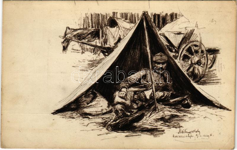 Pihenő. Kiadja a m. kir. 10. honvéd gyalogezred az özvegy- és árvaalap javára. Herbst műnyomása - 32. / WWI Austro-Hungarian K.u.K. military art postcard s: Meilinger Dezső hadnagy (Rb)