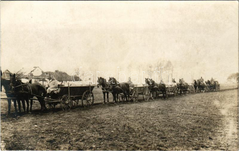 Volhínia, érkezik a szállítmány a frontra, osztrák-magyar katonák, lovas szekér / WWI military, Austro-Hungarian K.u.k. soldiers. photo