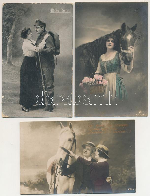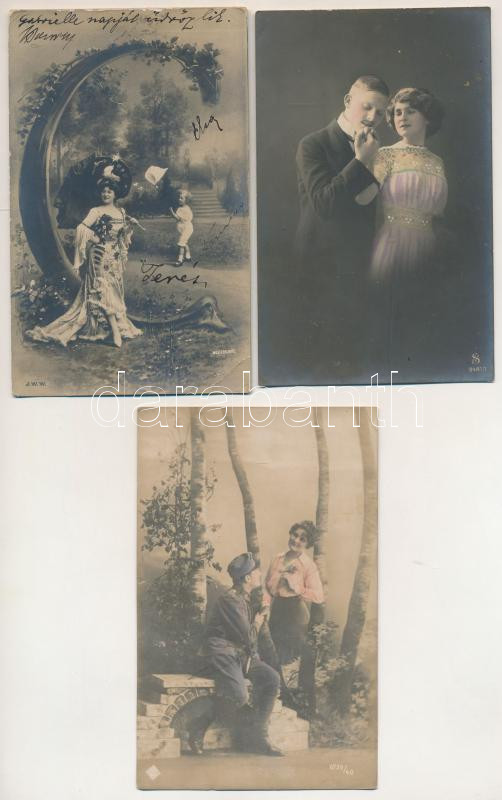 15 db RÉGI motívum képeslap: hölgyek, szerelmespárok, romantika / 15 pre-1945 motive postcards: ladies, love couples, romance