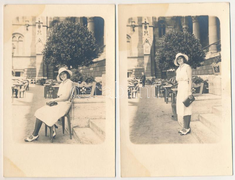 2 db RÉGI fotós képeslap: kalapos hölgy / 2 pre-1945 photo postcards: lady with hat