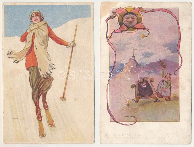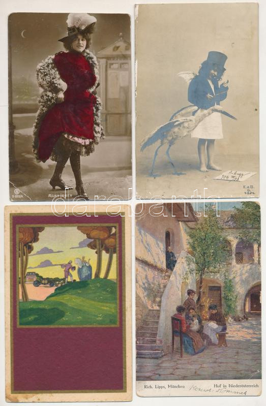 57 db régi, sérült képeslap, olasz art deco pl. Muggiani, Degi, színész, art nouveau, művész- és grafikai lapok, fotólapok / 57 pre-1945 damaged postcards in various topics