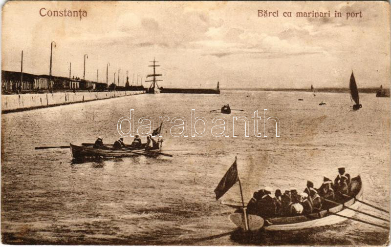 Constanta, Konstanca; Barci cu marinari in port / Romanian Navy, boats with mariners (EM)