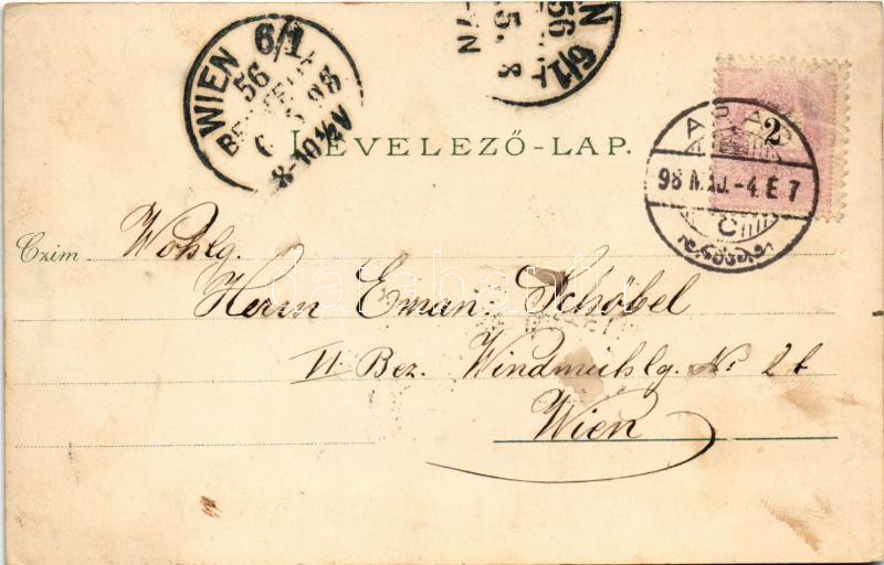 1898 Arad, Szabadság tér, piac, Színház épület délről nézve, Jószágkormányzóság palotája / square, market, theatre, palace. Ottmar Zieher Art Nouveau, floral, litho (fl)