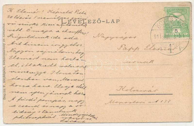1911 Kovászna, Covasna; Templom utca, Piac tér. Bogdán F. fényképész / street, market square. floral (felületi sérülés / surface damage)
