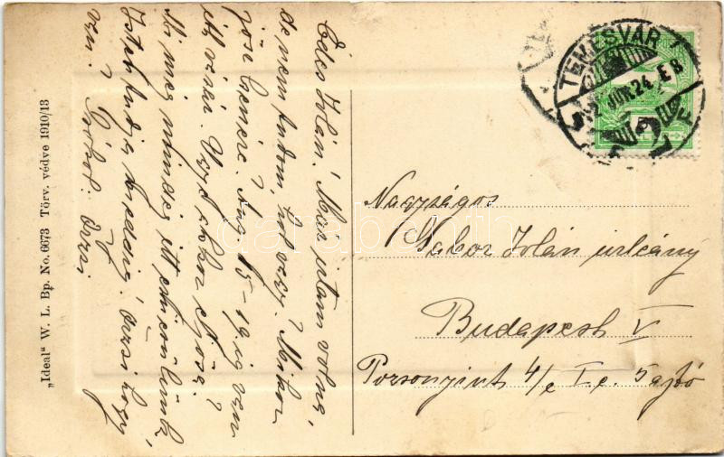 1912 Temesvár, Timisoara; Ligeti út, villamos. "Ideal" W.L. Bp. No. 6673. / street view, tram (szakadás / tear)