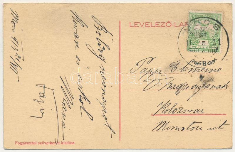 1913 Mócs, Mociu; Kolozs vármegyei kórház. Fogyasztási szövetkezet kiadása / county hospital (ázott / wet damage)