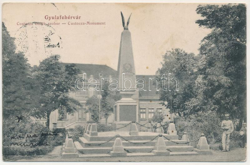 1915 Gyulafehérvár, Karlsburg, Alba Iulia; Custozzai ütközet emlékszobra. Weisz Bernát kiadása / military monument (szakadás / tear)