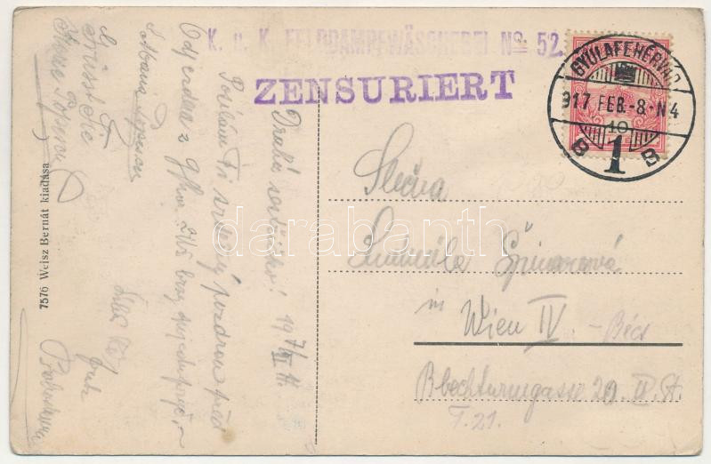 1917 Gyulafehérvár, Karlsburg, Alba Iulia; Római katolikus főgimnázium. Weisz Bernát kiadása / Catholic grammar school + "K.u.k. Feldampfwäscherei No. 52 Zensuriert" (EK)