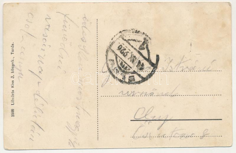 1926 Torda, Turda; Topánfalvi vasút alagútja az Aranyos folyóval. Kiss J. kiadása / Campeni railway tunnel with Aries riverside (gyűrődések / creases)