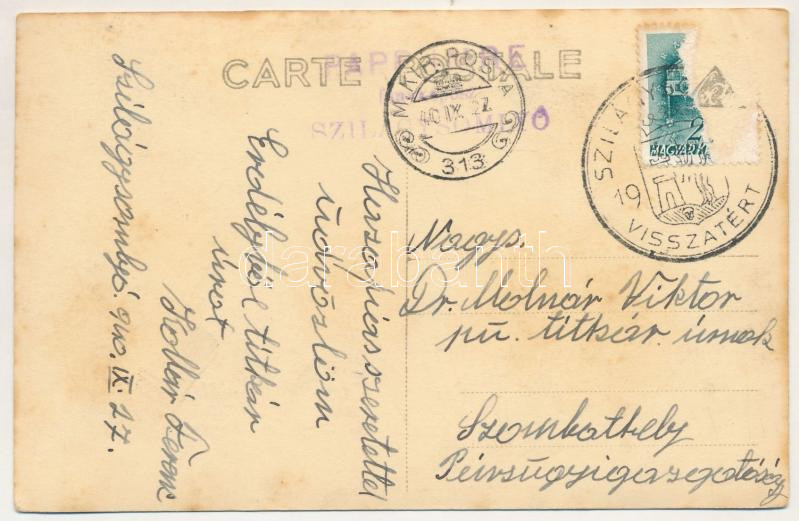 1940 Szilágysomlyó, Simleu Silvaniei; Látkép / general view. photo + "1940 Szilágysomlyó visszatért" So. Stpl. + "M. Kir. Posta 313" (fl)