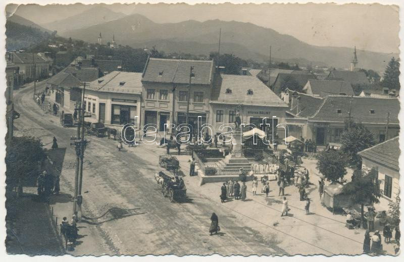 1942 Csernátfalu, Cernat, Cernatul (Négyfalu, Sacele); Vedere generala / látkép, Stefan Bálint, Gáspár Albert, Ana Cercao üzlete, piac / general view, shops, market. photo (EB)
