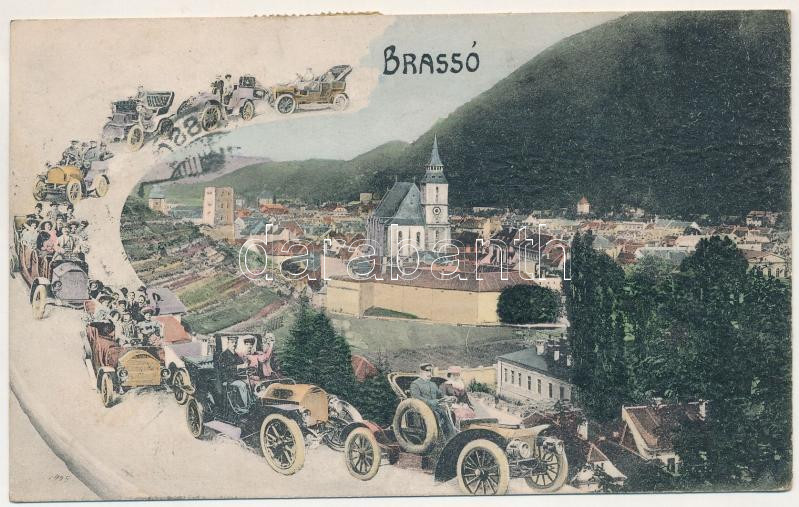 Brassó, Kronstadt, Brasov; látkép. Montázs automobilokkal / general view. Montage with automobiles (r)