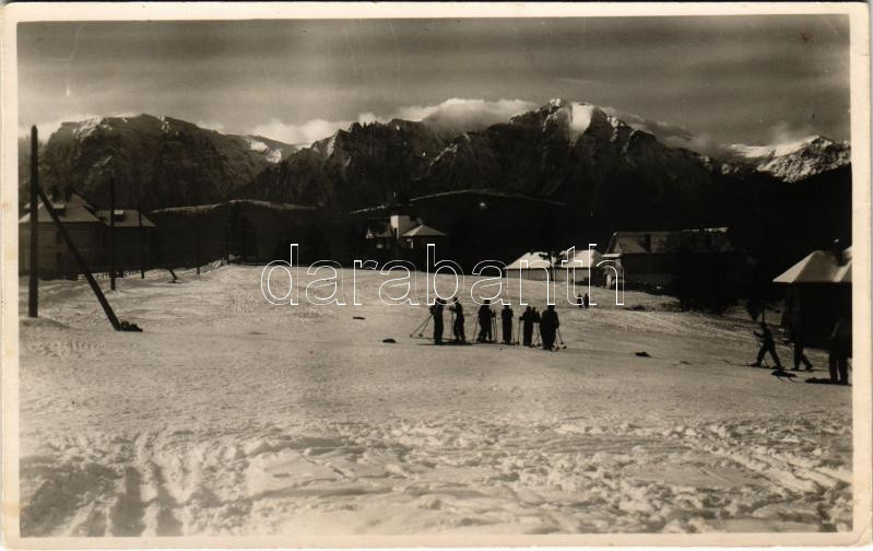 Predeál, Predeal; Predealul Iarna, Cu skyurile pe teren / síelők, téli sport / skiers, winter sport (EK)