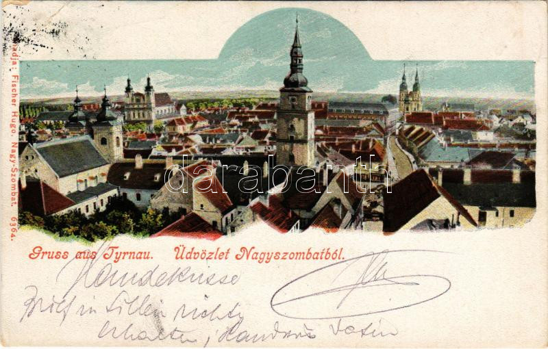 1903 Nagyszombat, Tyrnau, Trnava; látkép templomokkal. Fischer Hugo kiadása / general view with churches (EB)