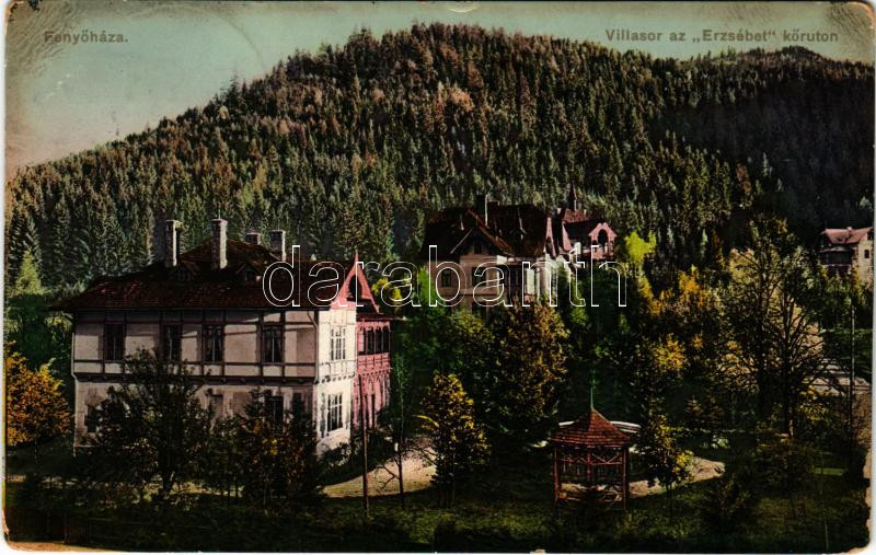 1912 Fenyőháza, Lubochna; Villasor az Erzsébet körúton / villas (kopott sarkak / worn corners)