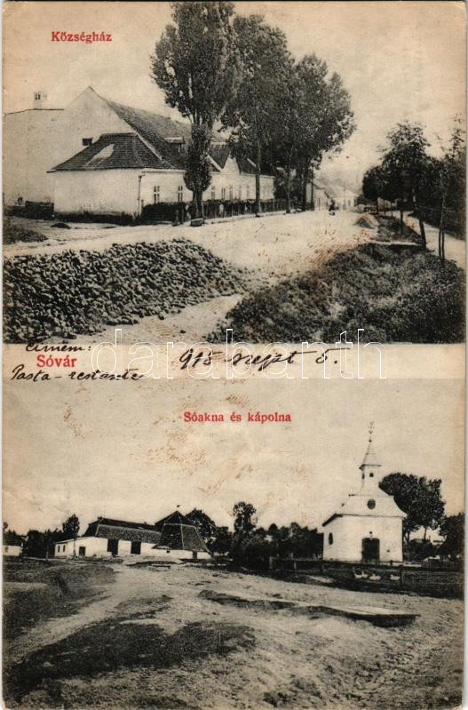 1915 Tótsóvár, Sóvár, Soóvár, Solivar (Eperjes, Presov); Községháza, Sóakna és kápolna. Zavetzky Gyula kiadása. Divald Károly fia / town hall, salt mine and chapel (fl)