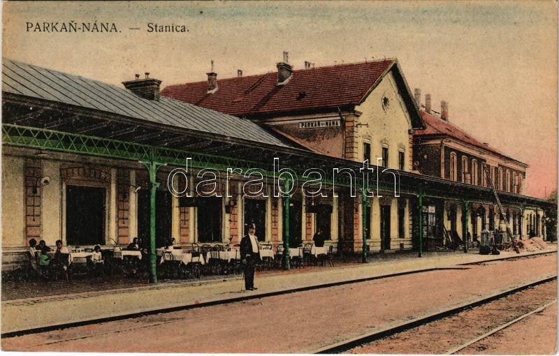1923 Párkánynána, Párkány-Nána, Parkan-Nána, Parkan, Stúrovo; Stanica / vasútállomás, vasúti vendéglő / railway station, restaurant (EK)