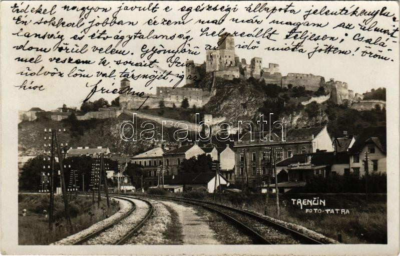 1930 Trencsén, Trencín; vár, vasúti pálya / Trenciansky hrad / castle ruins, railway tracks. Foto Tatra photo