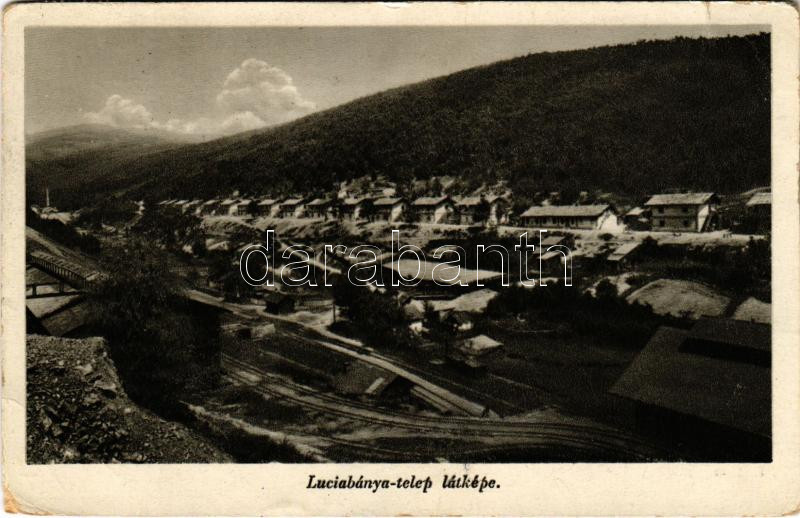 1940 Luciabánya, Lucziabánya, Luciabana (Mecenzéf, Medzev); látkép, bánya telep. Győri és Boros felvétele / general view, mine (EM)