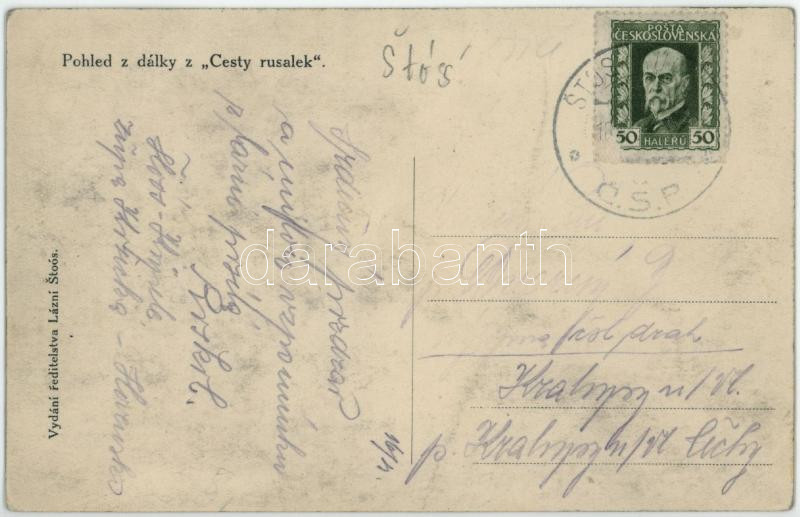 Stószfürdő, Stoósz-fürdő, Kúpele Stós; Pohled z dialky z "Cesty rusalek" / út, fürdő látképe / road, spa, general view (EK)