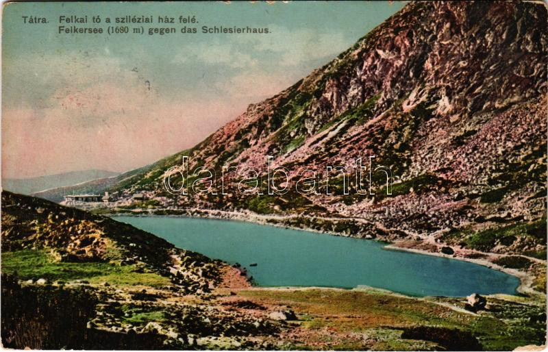 Tátra, Magas-Tátra, Vysoké Tatry; Felkai-tó a Sziléziai ház felé. Feitzinger Ede Ph. No. 766. / Felkersee gegen das Schlesierhaus / lake, tourist house (kopott sarkak / worn corners)