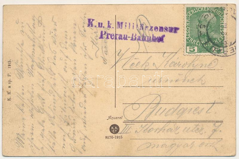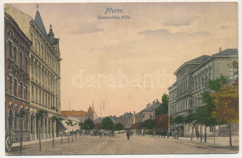 Prerov, Prerau; Komenského trída / street view + "K.u.k. Militärzensur Prerau-Bahnhof" (wet corner)