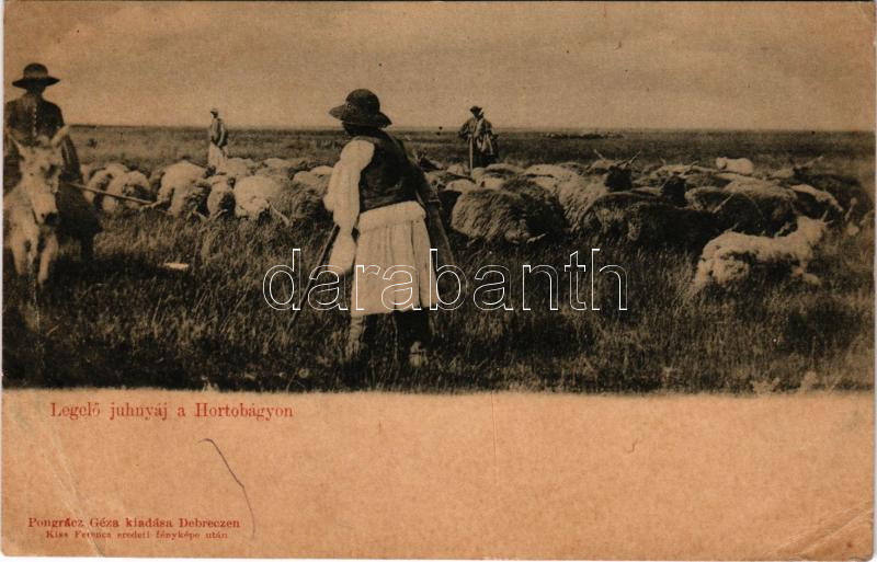 1900 Hortobágy, legelő juhnyáj. Pongrácz Géza kiadása, Kiss Ferenc eredeti fényképe után (EB)