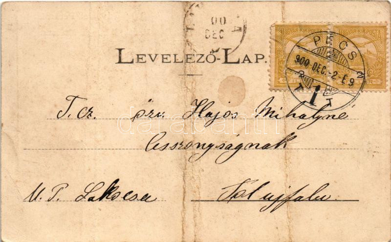 1900 Pécs, Mecsek, Bánfay úti Madonna, "Legmegbízhatóbb órák és legszebb ékszerek raktára". Schönwald Imre kiadása (fa)