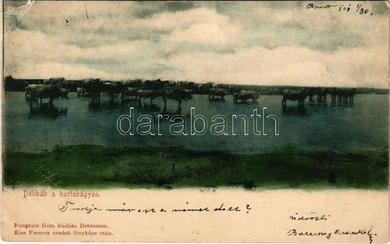 1901 Hortobágy, Délibáb a Hortobágyon, magyar folklór. Pongrácz Géza kiadása. Kiss Ferenc eredeti fényképe után (EB)