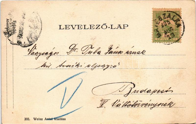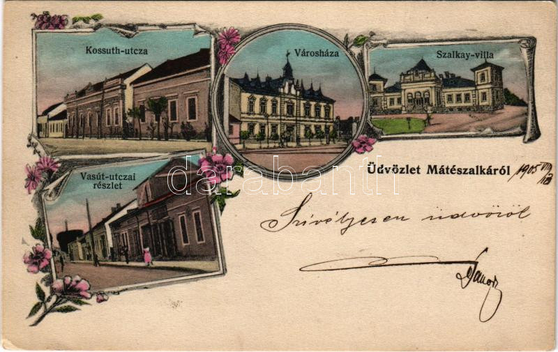 1905 Mátészalka, Kossuth utca, Városháza, Szalkay villa, Vasút utcai részlet. Weisz Antal kiadása, Art Nouveau, floral (EK)