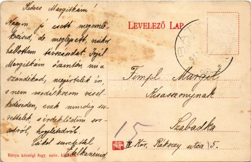 1912 Bátya, Községi fogyasztási szövetkezet üzlete és saját kiadása (fl)
