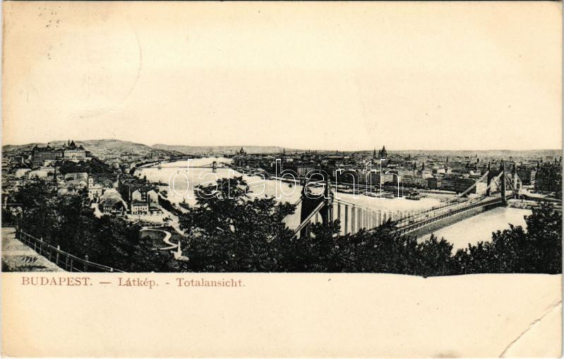 1913 Budapest, I. kerület; Dunai látkép Gellért-hegyről, Tabán, Erzsébet híd (EB)