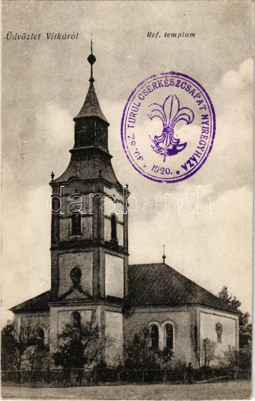 1922 Vitka (Vásárosnamény), Református templom. Hangya szövetkezet kiadása + "89. sz. Turul Cserkészcsapat Nyíregyháza 1920." (EK)