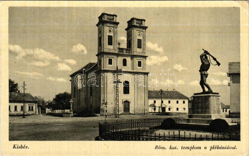 1941 Kisbér, Római katolikus templom a plébániával, Hősök szobra, emlékmű. Gulyás László kiadása (EK)